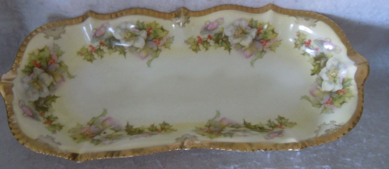 ANTIQUE PRUSSIAN HOLLY AND CHRISTMAS ROSE CELERY DISH-LOVELY