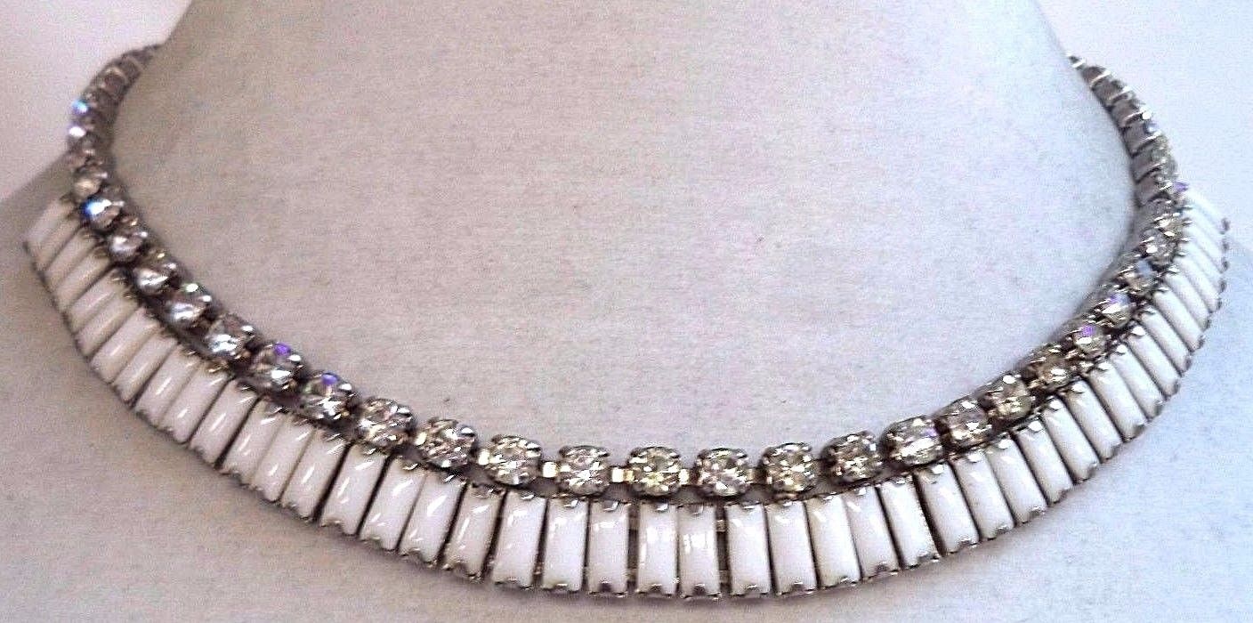 Title (ebay affiliate link): STUNNING VINTAGE ESTATE HIGH END MILK GLASS RHINESTONE 16 3/4" NECKLACE! G6390R