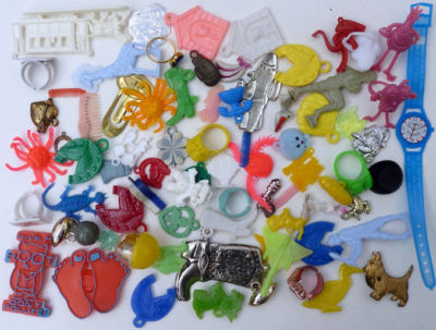 GUMBALL Vintage Plastic Prize Toy Charm Ring lot of 67