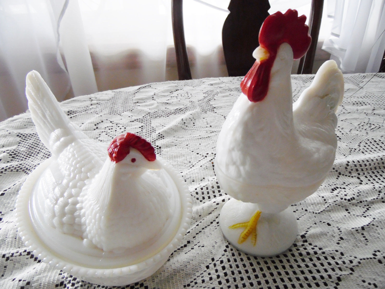 Title (ebay affiliate link): WESTMORELAND MILKGLASS HEN ON A NEST AND TALL ROOSTER LIDDED DISHES