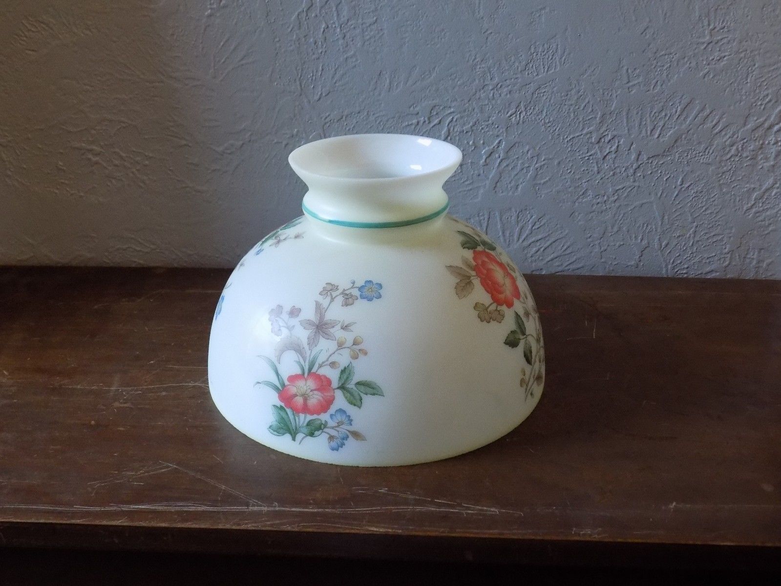 Title (ebay affiliate link): Vintage Milk glass Oil Lamp Shade 9 3/4" fitter Hand painted Floral pattern