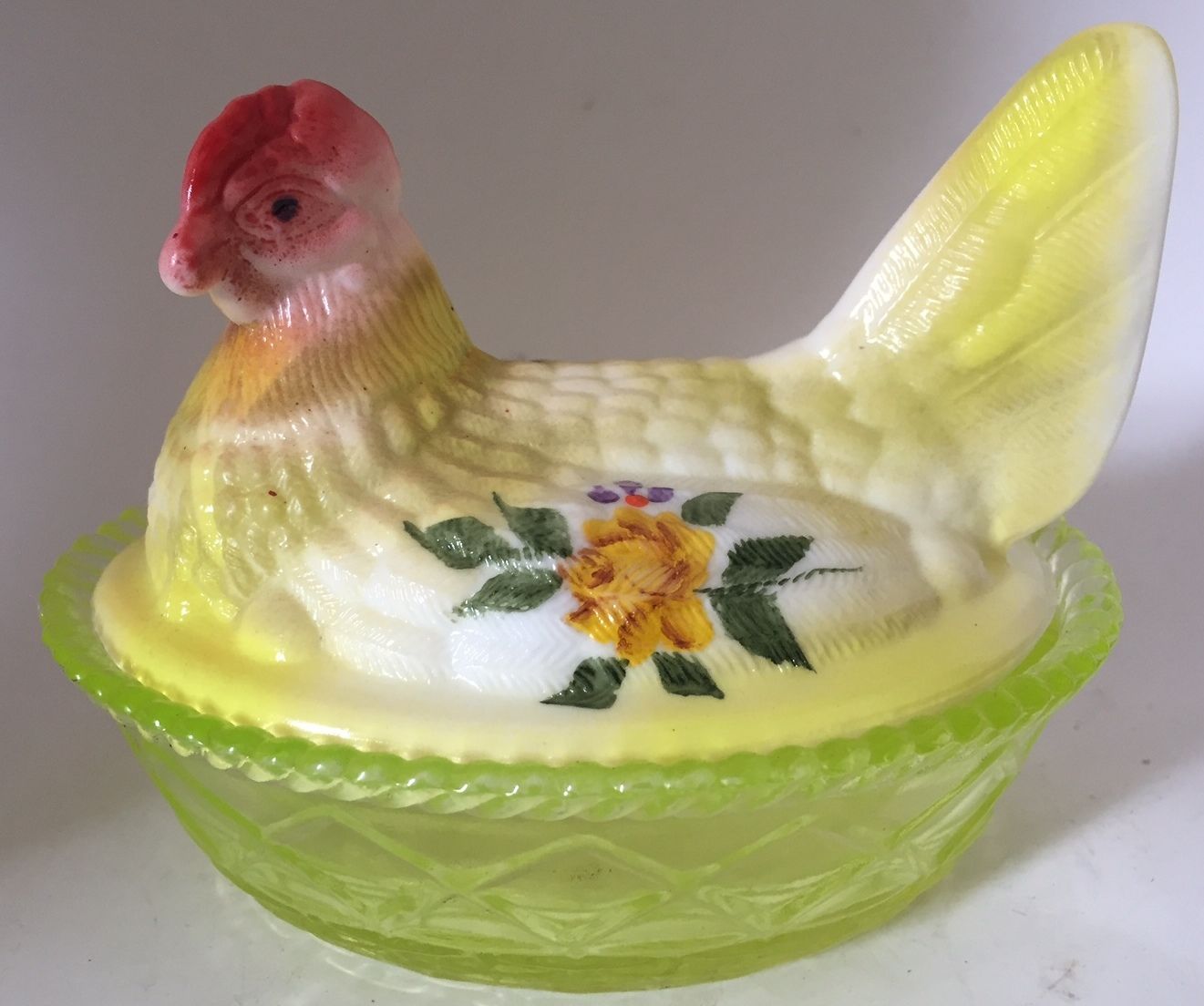 Chicken Hen Covered Dish - Milk Glass Airbrushed & Handpainted & Vaseline Glass