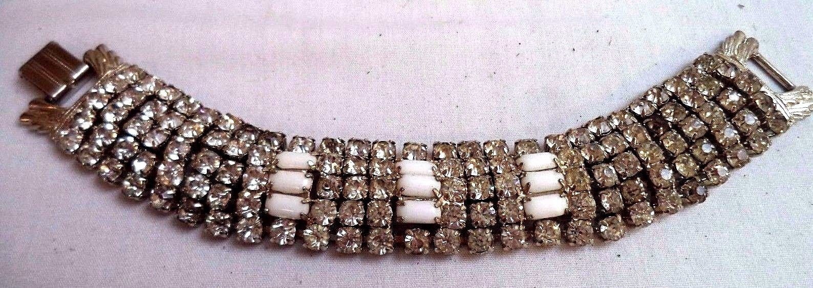 Title (ebay affiliate link): STUNNING VINTAGE ESTATE HIGH END MILK GLASS RHINESTONE 7 1/4" BRACELET!!! G6393L
