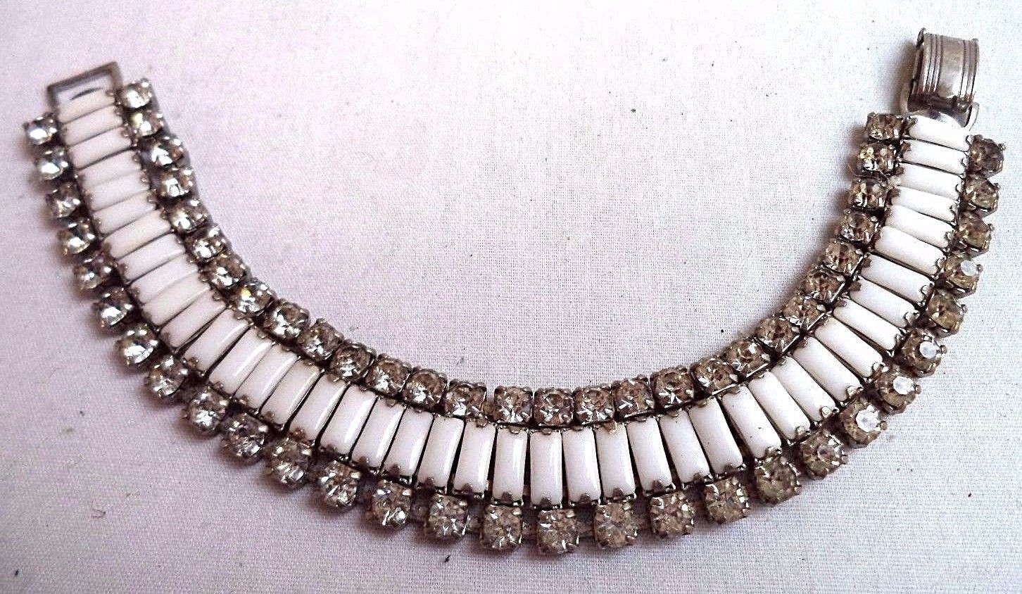 Title (ebay affiliate link): STUNNING VINTAGE ESTATE HIGH END MILK GLASS RHINESTONE 7 1/4" BRACELET!!! G6393Q