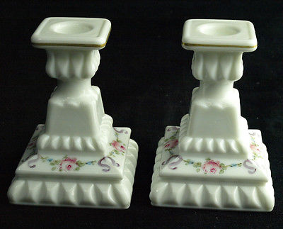 Title (ebay affiliate link): VINTAGE PAIR OF WESTMORELAND 5 1/2" MILK GLASS WEDDING ROSES/BOWS CANDLE HOLDERS