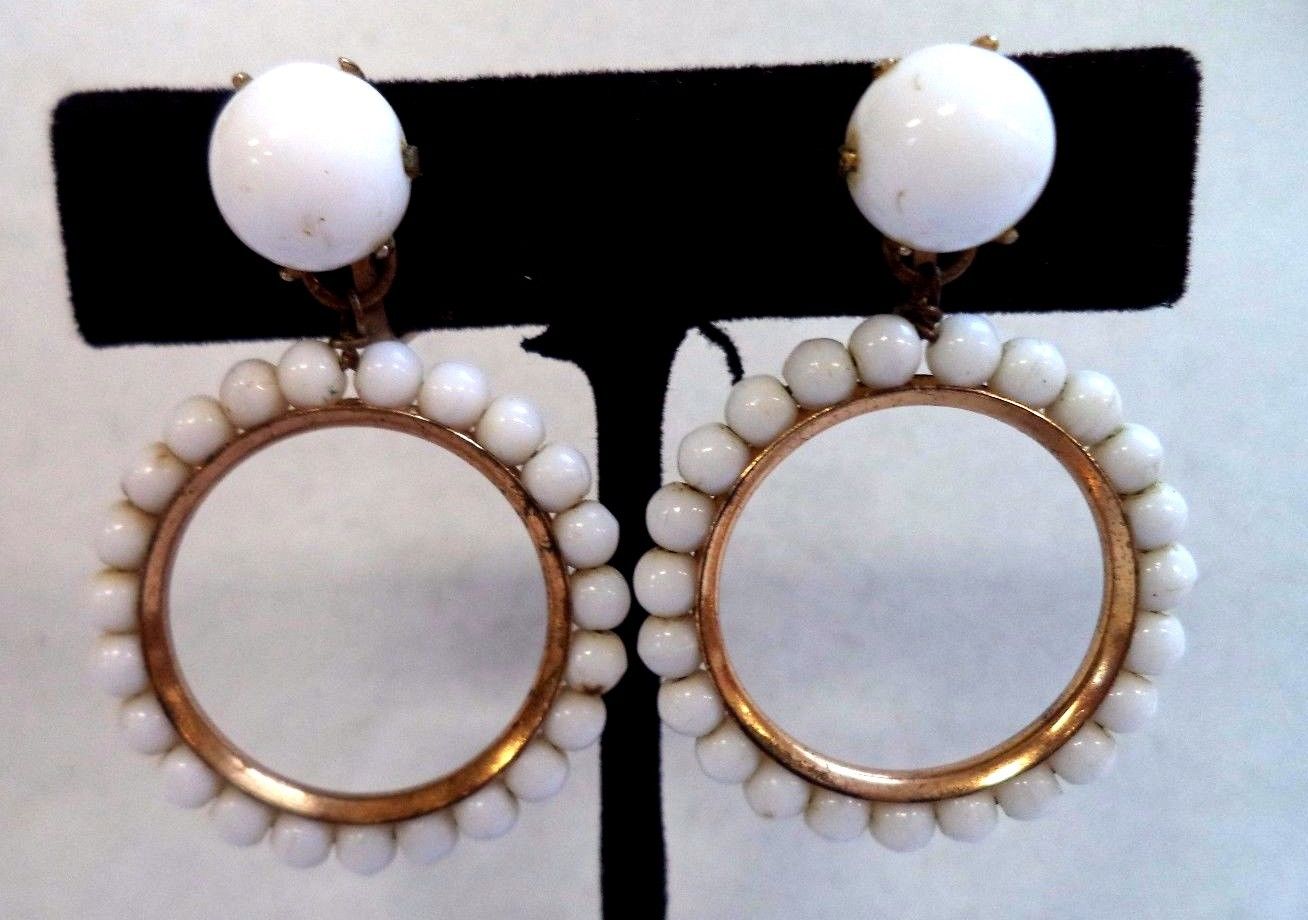 Title (ebay affiliate link): STUNNING VINTAGE ESTATE GOLD TONE MILK GLASS CLIP ON 1 3/4" EARRINGS!! 7261G