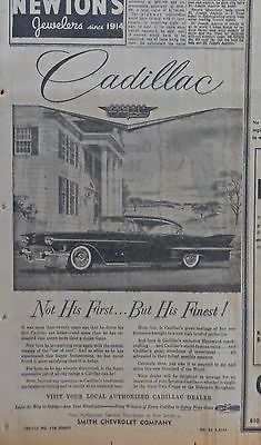 1958 newspaper ad for Cadillac - Not His First But His Finest! the "car of cars"