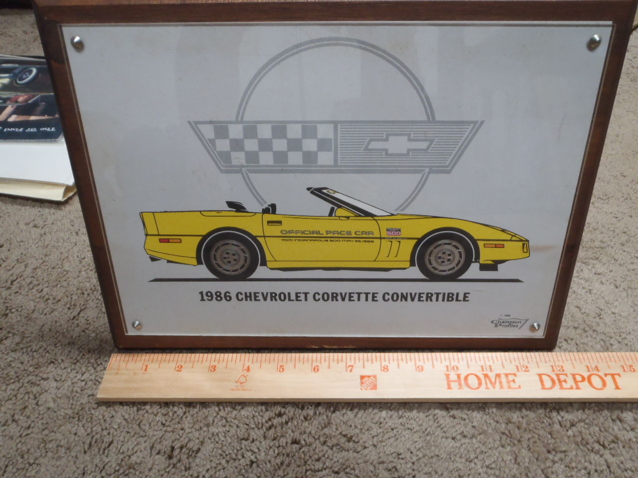 Title (ebay affiliate link): PLAQUE OF 1986 CORVETTE CONVERTIBLE INDY PACE CAR