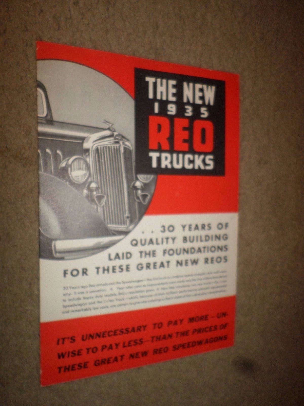 Title (ebay affiliate link): 1935 REO "Speedwagon + 1/2 & 1 1/2 Ton Trucks" Truck Dealer Sales Brochure