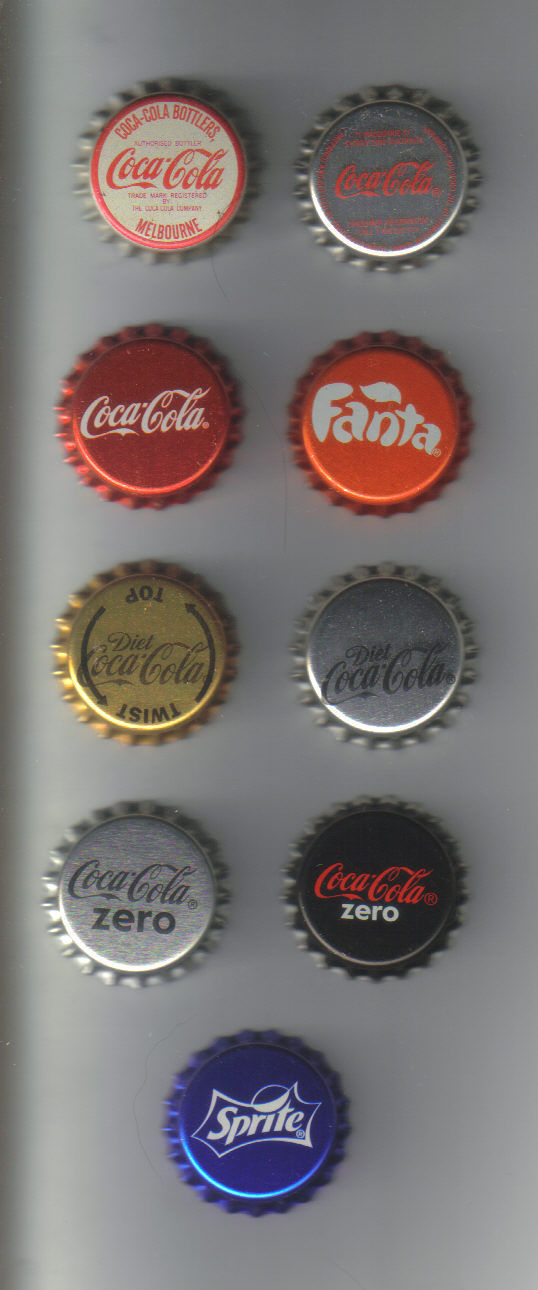Soda caps SODA 9 60''s - 2000''s unused Coca Cola caps from Australia