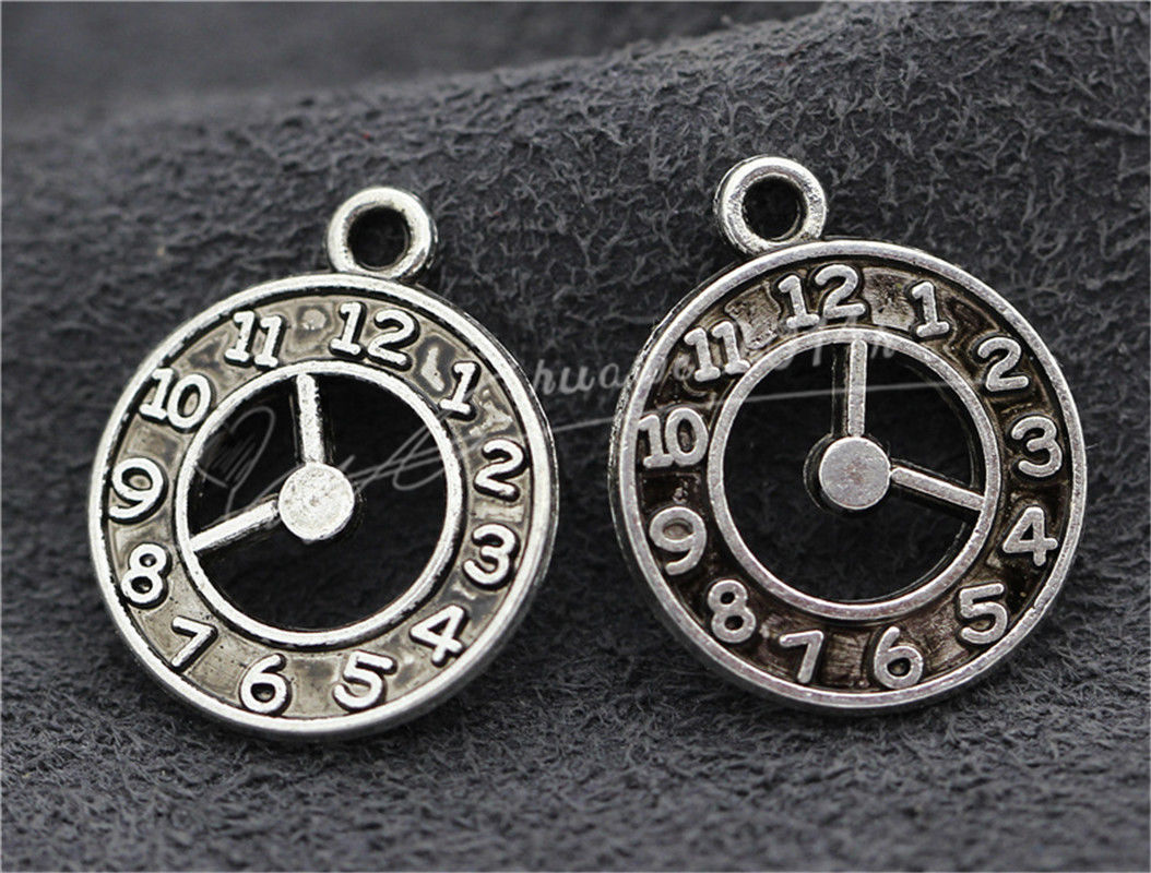 10pcs Antique Silver two-sided Clock Charms Pendant Crafts DIY Jewelry 21x18mm H