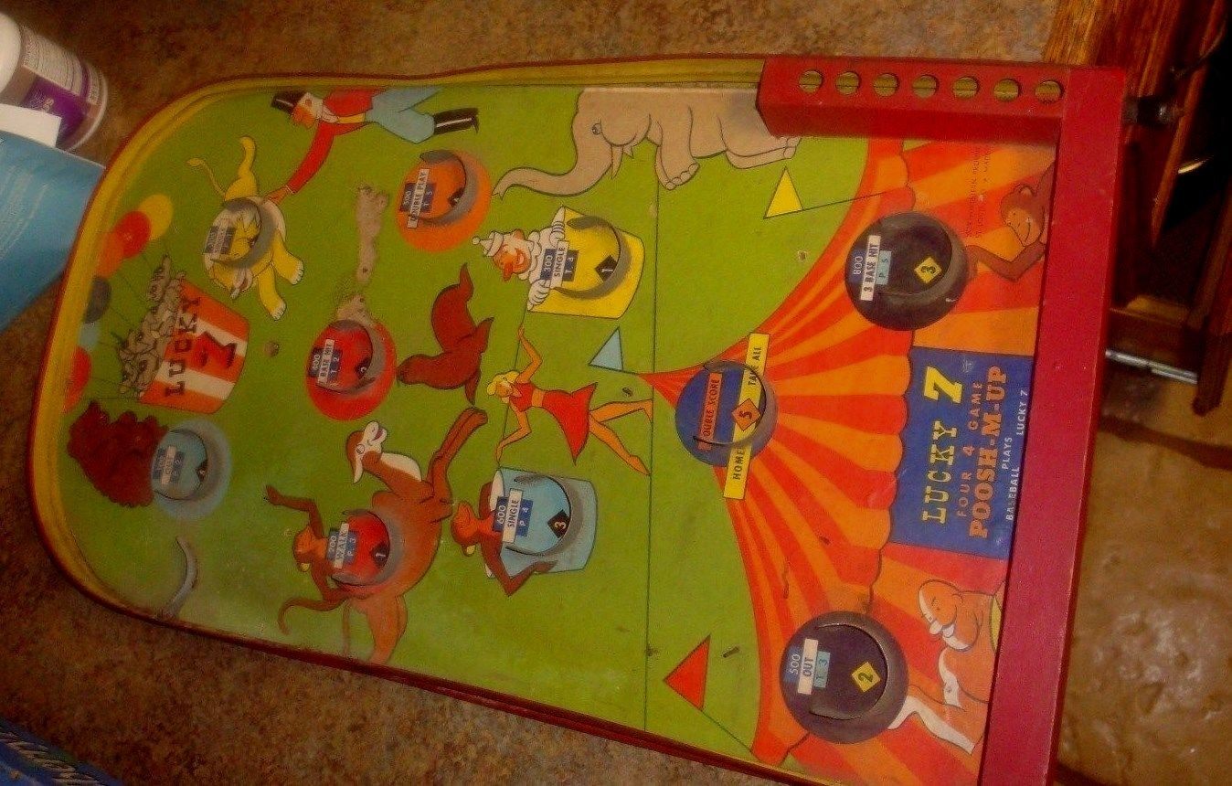 Title (ebay affiliate link): Vintage 50''s -60''s Lucky 7 Poosh-M-Up Pinball Baseball Game Play 4 Games In One