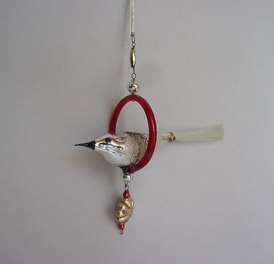 Vintage BLOWN GLASS BIRD IN A GLASS RING CHRISTMAS ORNAMENT