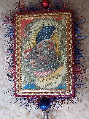Vtg Dresden Patriotic Eagle Flag Radko Mercury Glass Bead Feather Tree Ornament