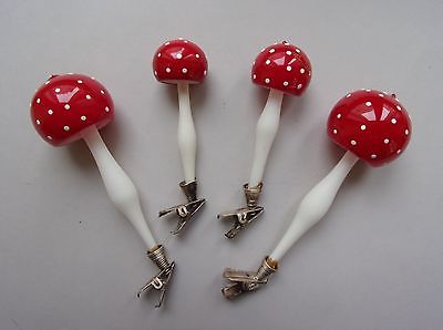 LOT OF 4 VINTAGE CLIP ON BLOWN GLASS MUSHROOMS Christmas Ornaments