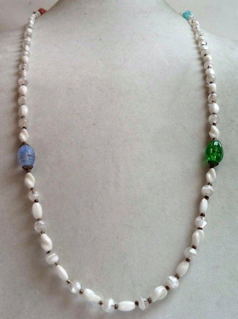 Title (ebay affiliate link): STUNNING VINTAGE ESTATE MILK GLASS MULTI COLOR 35" NECKLACE! 7270U