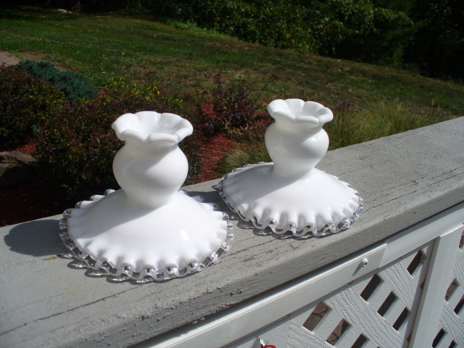 Title (ebay affiliate link): Pair of Fenton Silver Crest Milk Glass Candle Holders Ruffled Edge Candlesticks