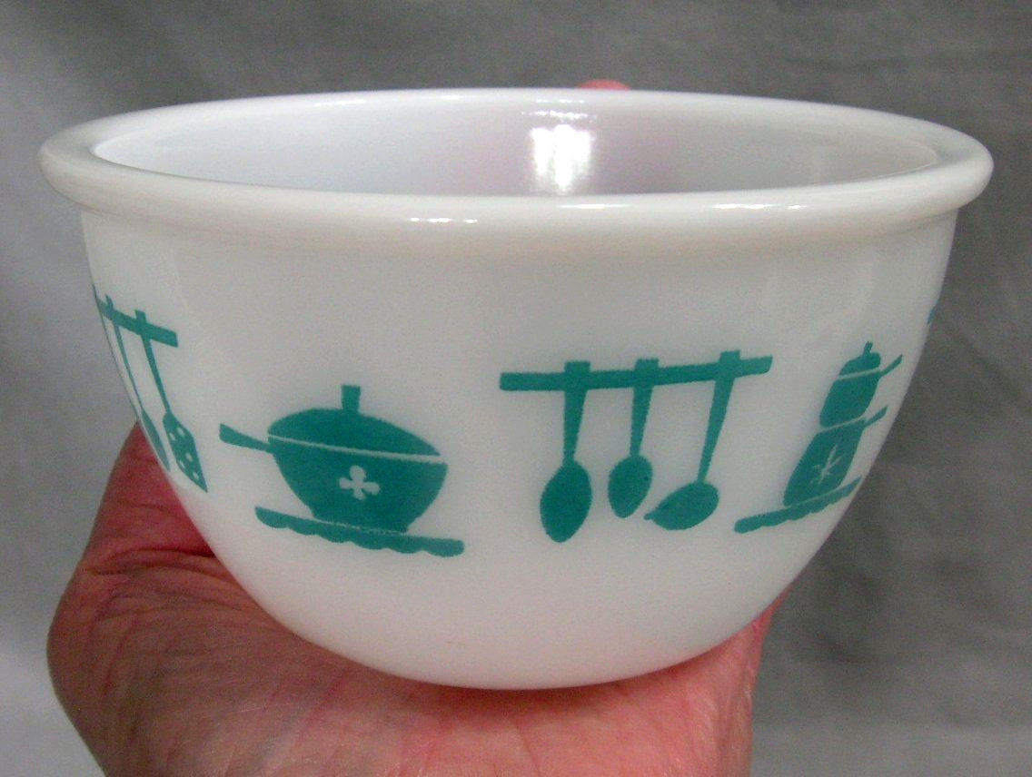 Title (ebay affiliate link): VTG HAZEL ATLAS TURQUOISE BLUE KITCHEN AIDS WHITE MILK GLASS MIXING BOWL 4.75"