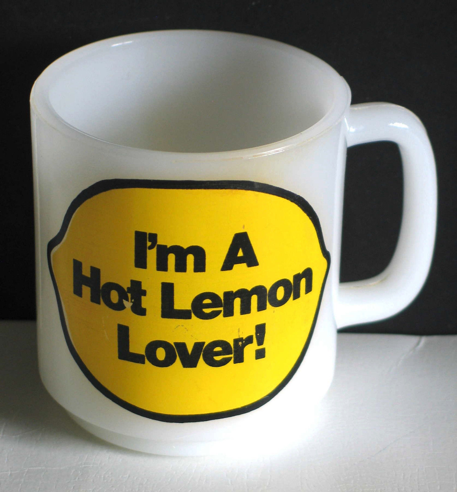 Title (ebay affiliate link): Vintage Glasbake I''m A Hot Lemon Lover Milk Glass Coffee Cup Mug FREE SH