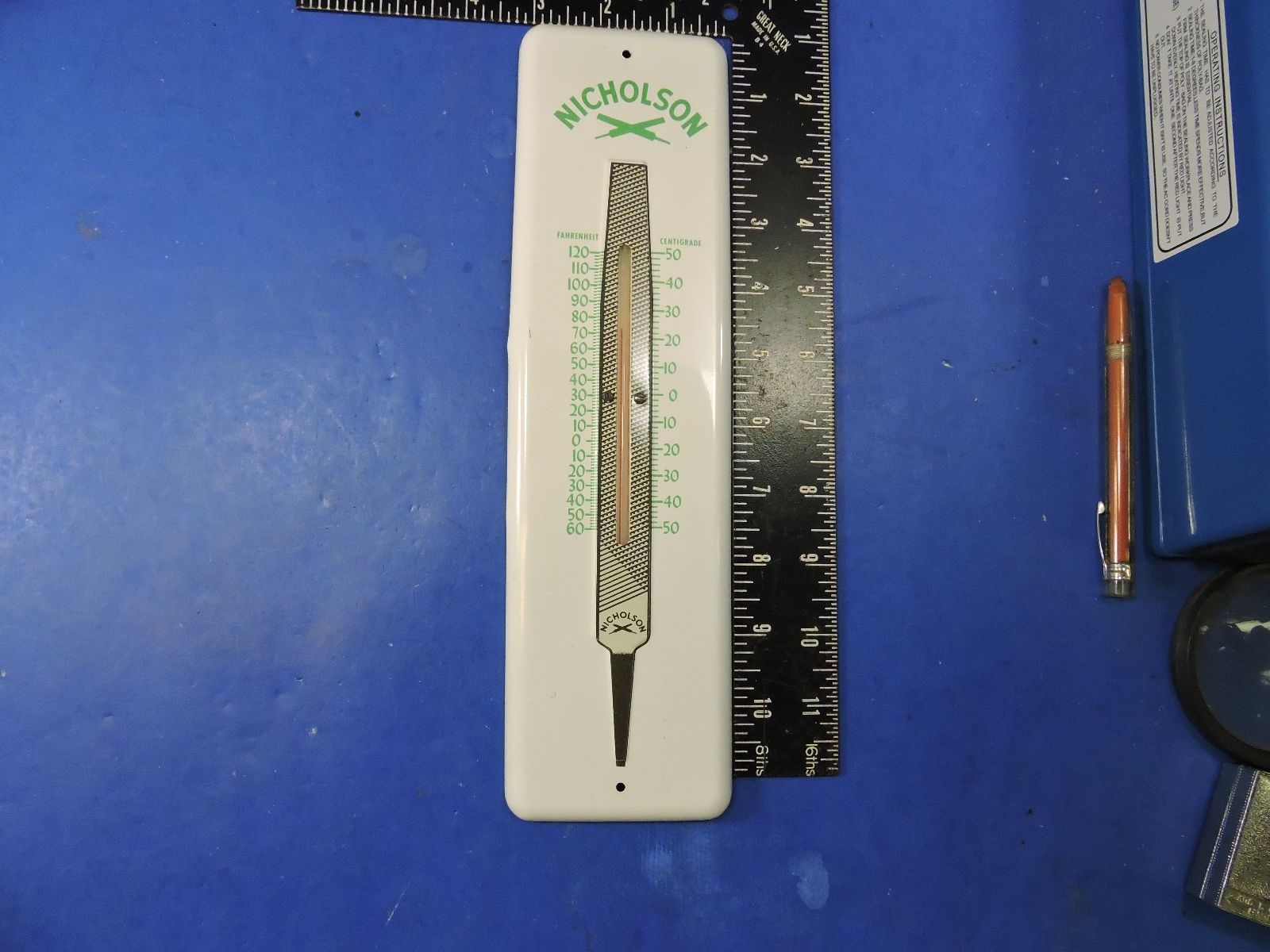 VINTAGE NICHOLSON FILE WALL HANGING THERMOMETER