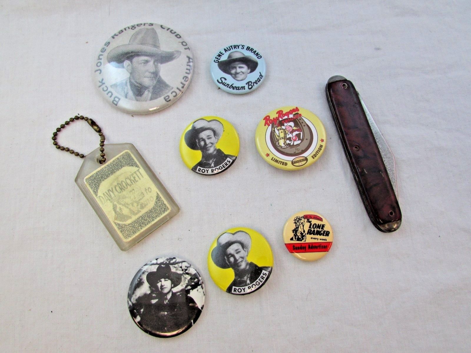 Title (ebay affiliate link): Lot Of Various Badge Pins/Roy Rogers/Buck Jones/Davy Crockett/Some Vintage/Knife