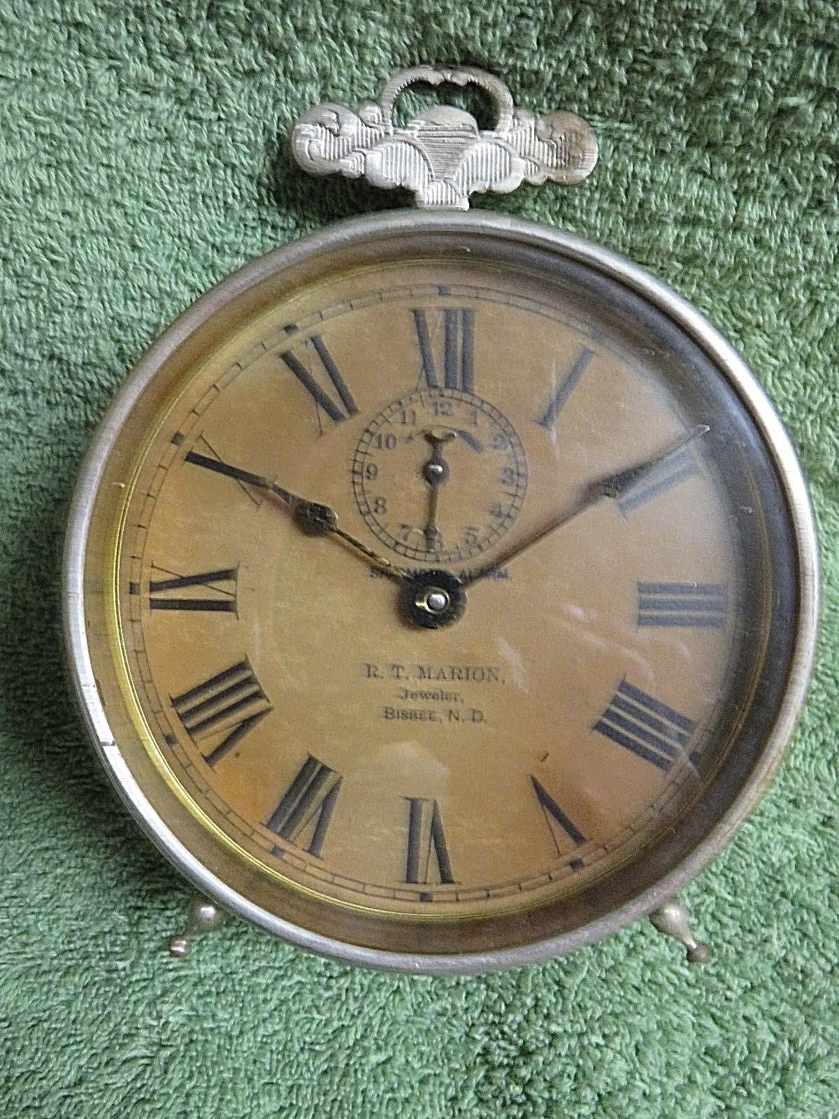 Title (ebay affiliate link): c 1910 SPASMODIC ADVERTISING ALARM CLOCK-RT MARION JEWELER BISBEE NORTH DAKOTA