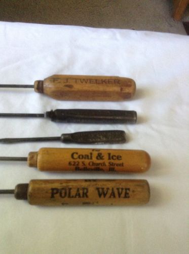 ADVERTISING ICE PICKS AND TOOLS FIVE PIECES.