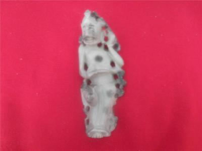 ANTIQUE WIMSICAL CARVED STONE ASIAN STATUE.