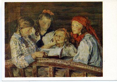 Title (ebay affiliate link): 1976 Peasant Girls Reading by Bogdanov-Belsky Russian Unposted postcard