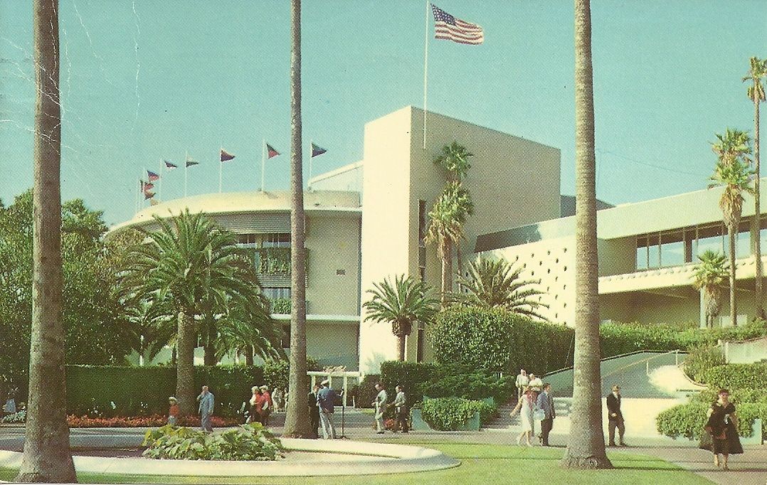 VINTAGE 1956 POSTCARD - CLUB HOUSE ENTRANCE, HOLLYWOOD PARK RACE TRACK, CA