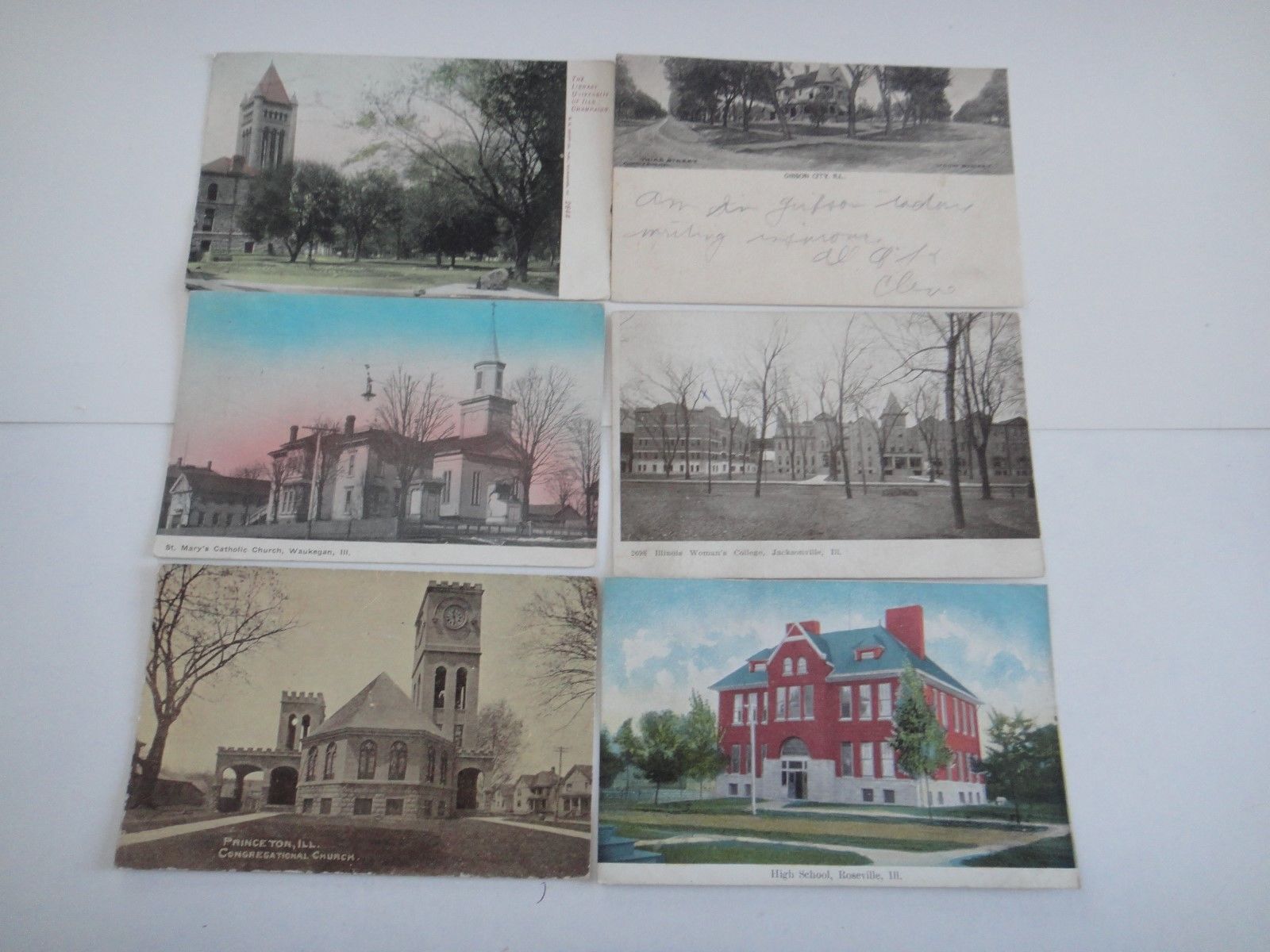 ILLINOIS == MIX AREAS == 6 POSTCARDS == 1 UNUSED