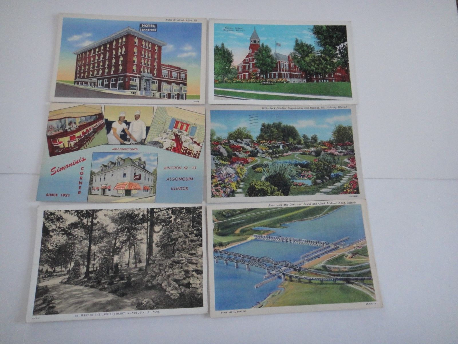 ILLINOIS == MIX AREAS == 6 POSTCARDS == 4 UNUSED