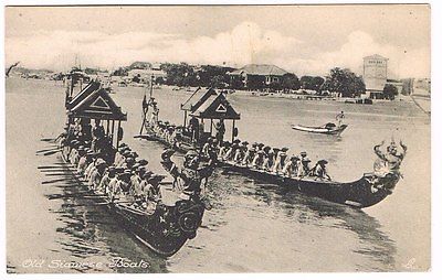 VINTAGE POSTCARD OLD SIAMESE BOATS ,ROYAL BARGE PROCESSION SIAM THAILAND