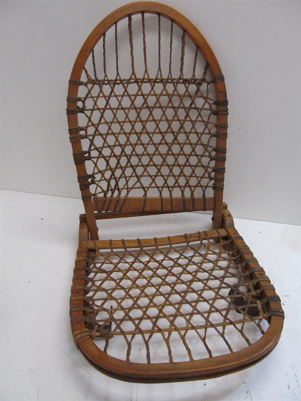 Vintage Vermont Snowshoe Signed TUBBS Folding Chair Classic Sno-Shu Leather Wood