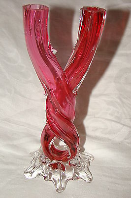 Antique Cranberry Thorn Twisted Double Bud Vase