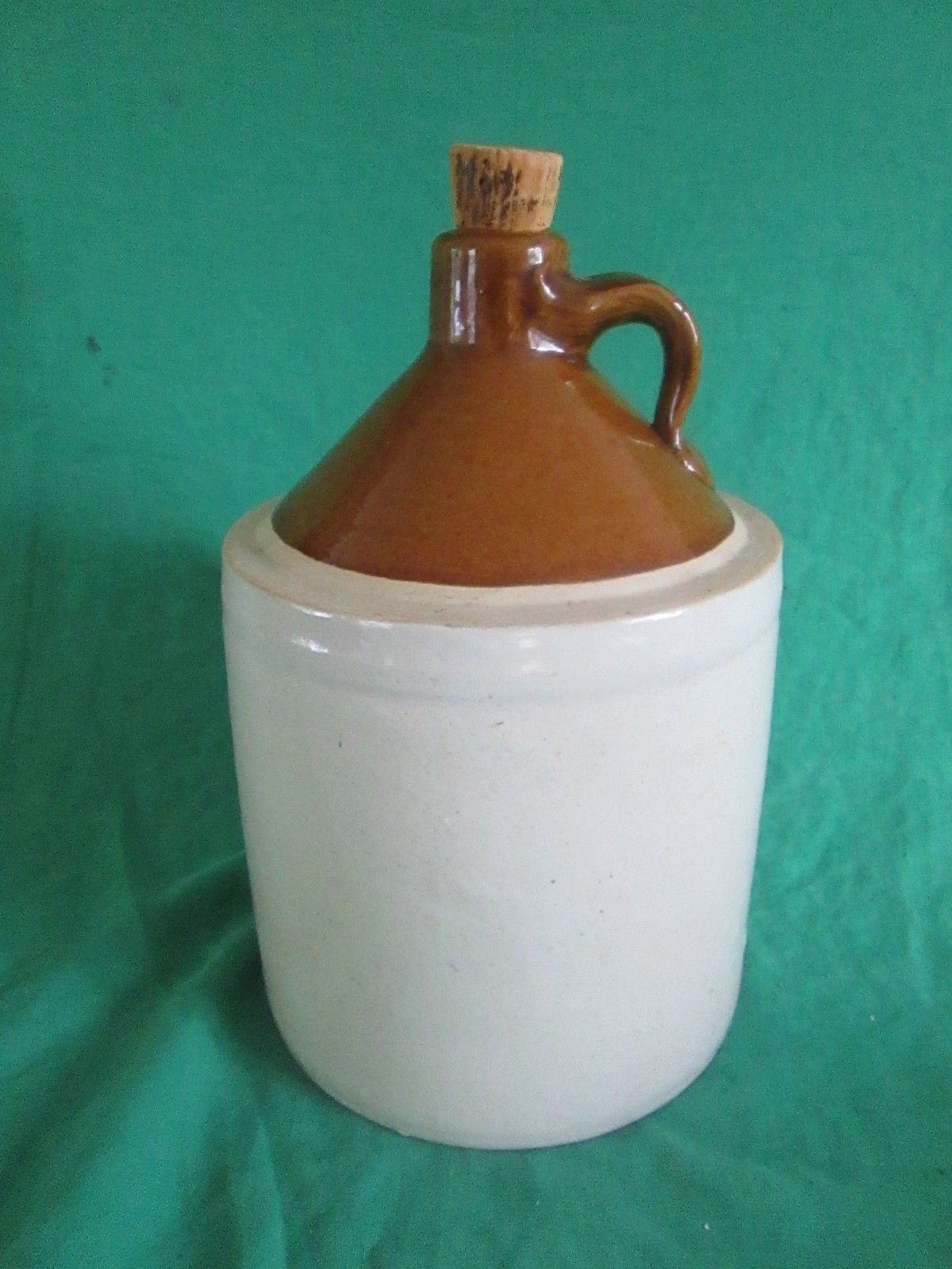 Title (ebay affiliate link): Vintage Antique Whisky Moonshine Stoneware Jug Brown & cream Gallon approx. cork