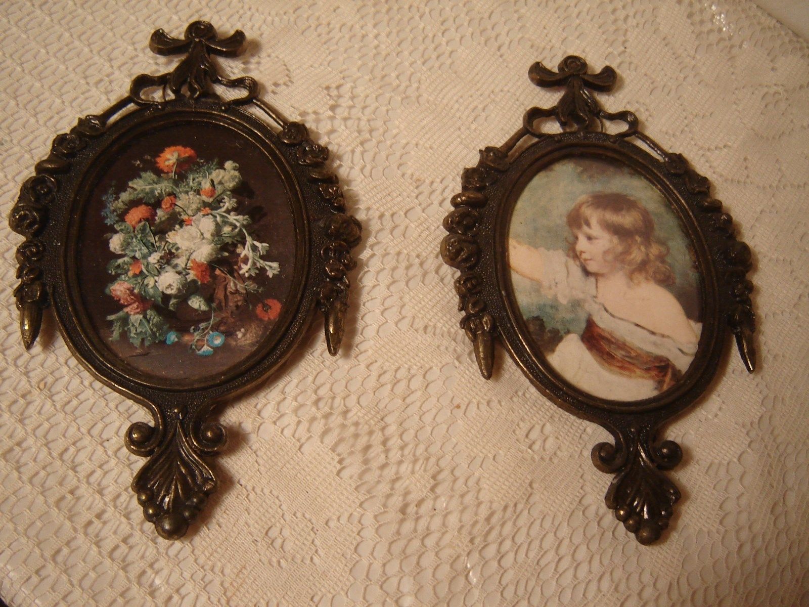 Title (ebay affiliate link): Lot 2 Vintage Italy Metal Ornate Oval Picture Frames Child Floral Decor