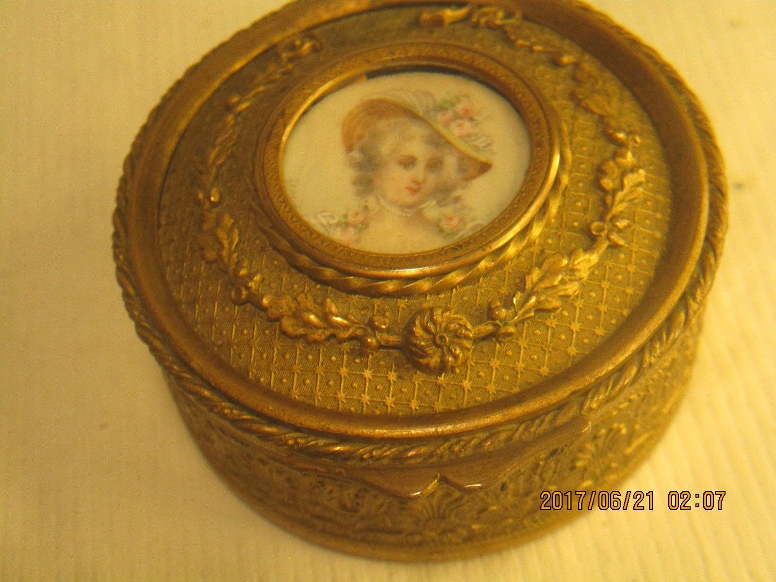 Title (ebay affiliate link): ANTIQUE FRENCH GILT Gold BRONZE BOX Hand Painted PORTRAIT MINIATURE Signed
