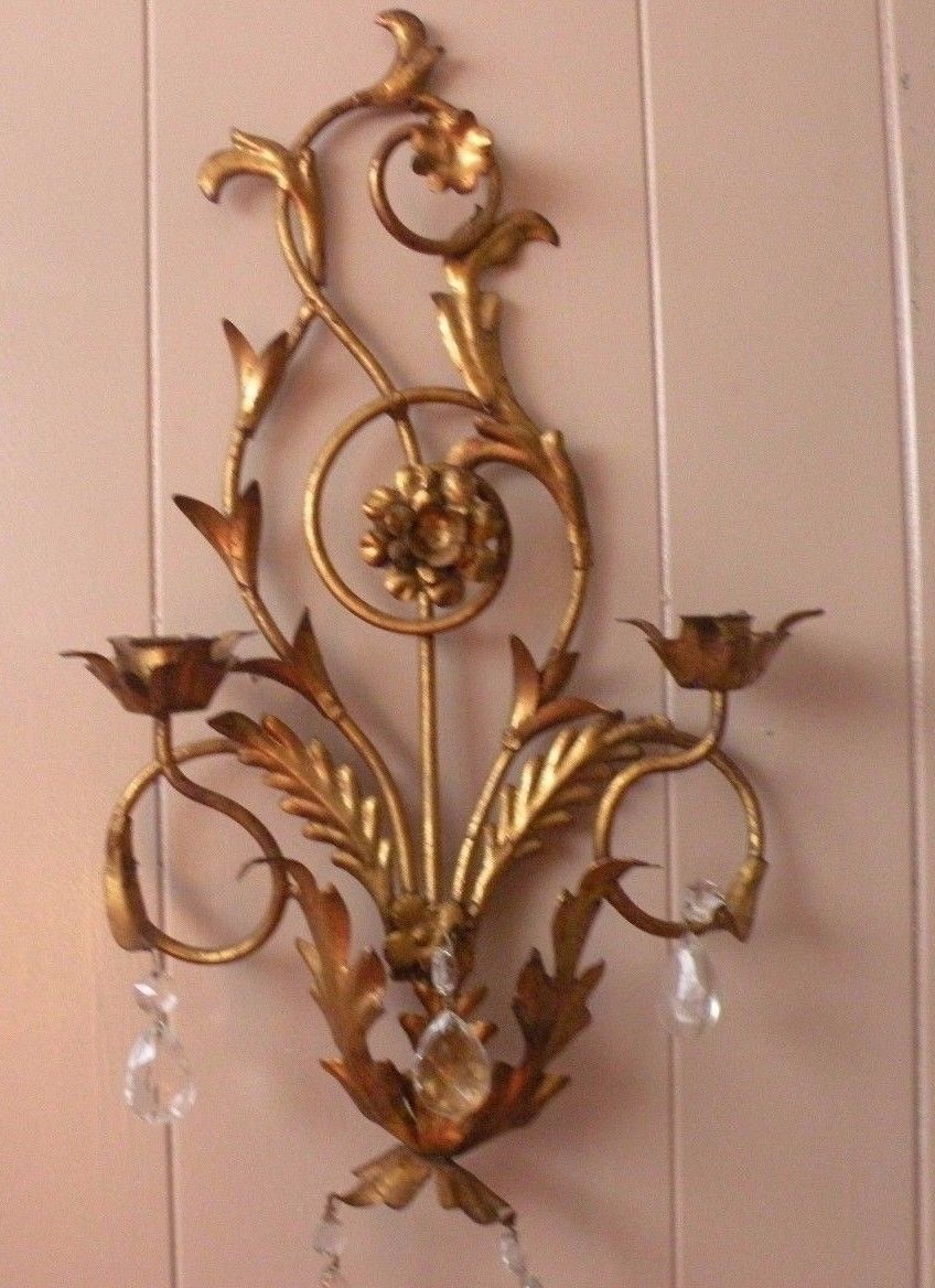 Title (ebay affiliate link): Old Italy Italian Tole Flower Gold Gilt Candelabra Wall Sconce Hollywood Regency