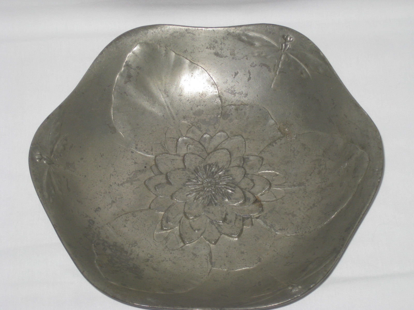 Kayserzinn 4245 Pewter Bowl Centerpiece Jugendstil Fire Fly Floral