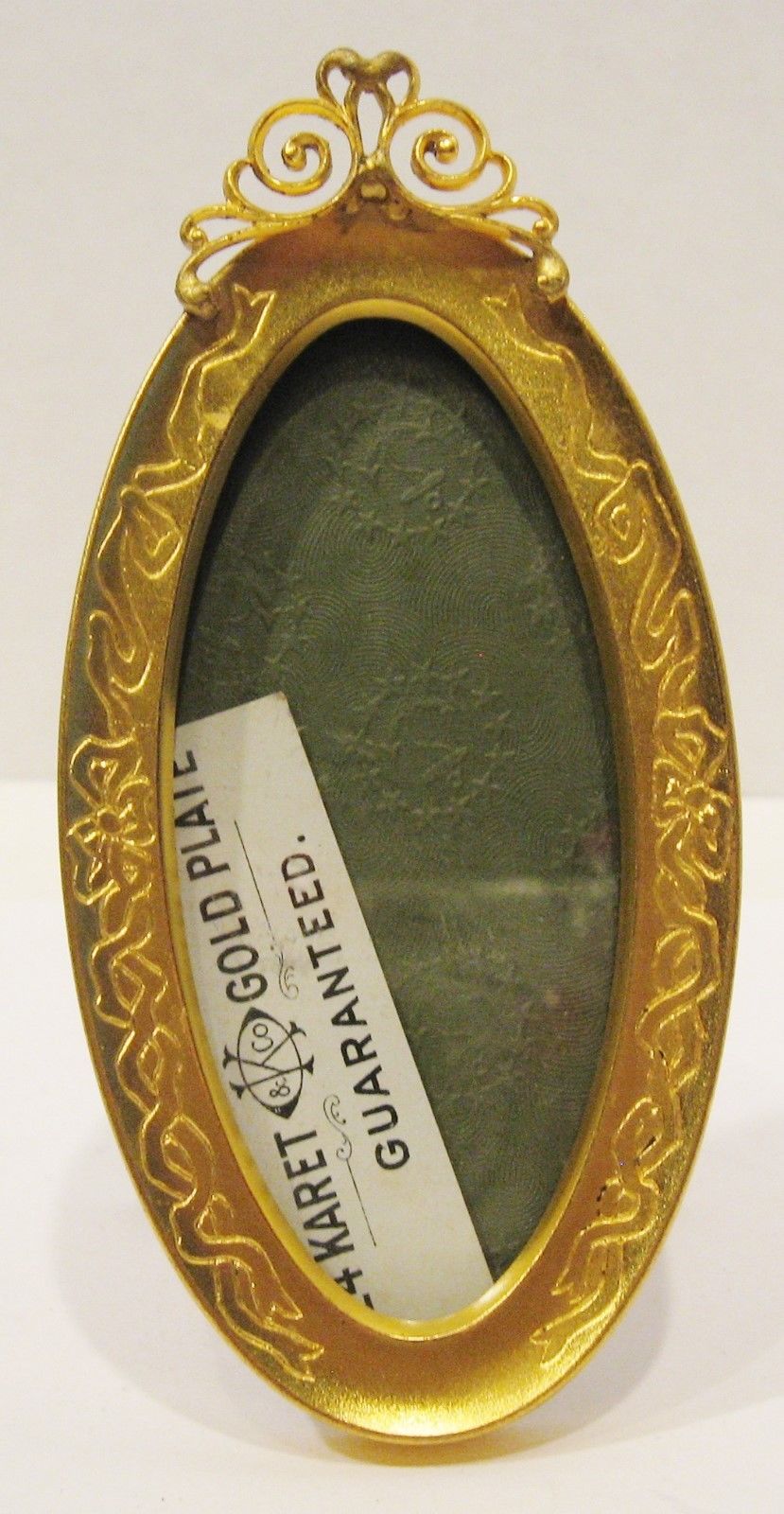 Antique Victorian Brass Easel Back Oval Shape Frame - Fancy Top