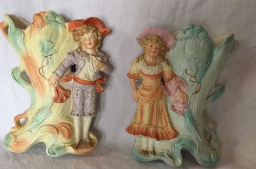 Vintage Victorian Boy & Girl Bisque Vases Art Nouveaux Style