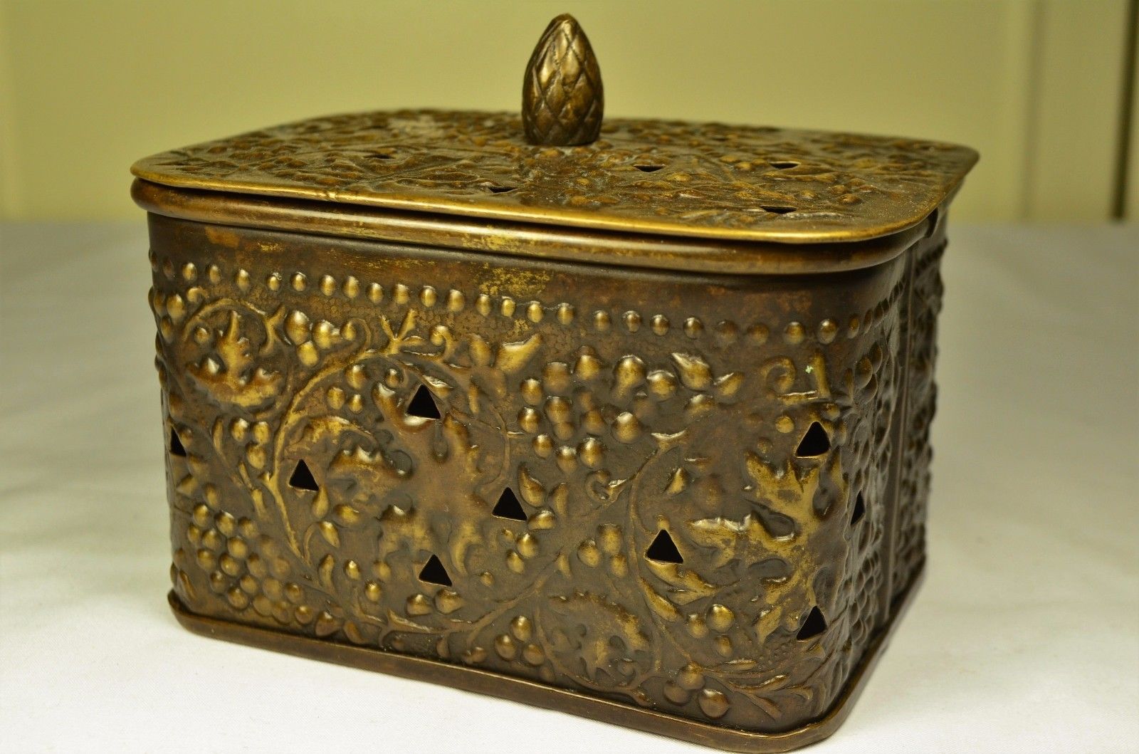 Title (ebay affiliate link): Antique Bronze or Brass Box Intricate Grape Leaf Impressions Hand Made Beauty