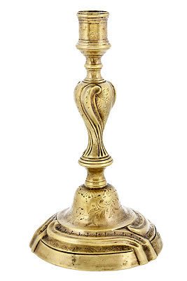 18C ENGRAVED FRENCH BRASS CANDLESTICK #2 NICE!