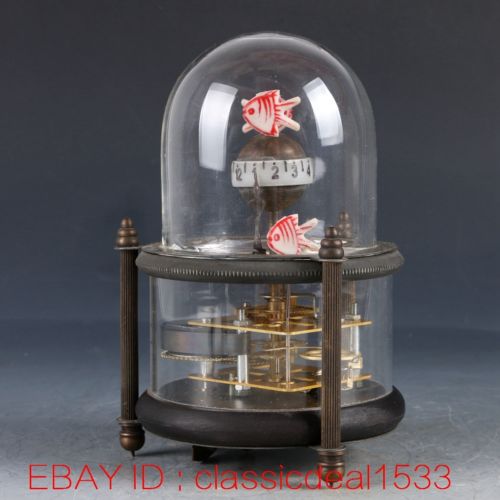 Vintage Collectible Old Chinese Brass Handwork Fishes Mechanincal Globe Clock