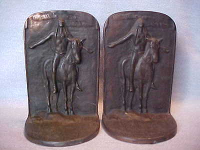Brass Bookends with Native Born American Rider on Horse, Old Vintage