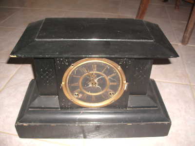 ANTIQUE mantel clock for parts or repair has key~NR~
