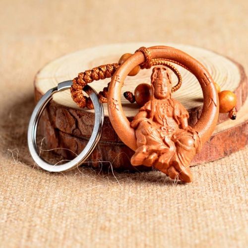Title (ebay affiliate link): Wood Carving Chinese Feng Shui Geomancy Freedom Kwan Yin Statue Key Chain Ring