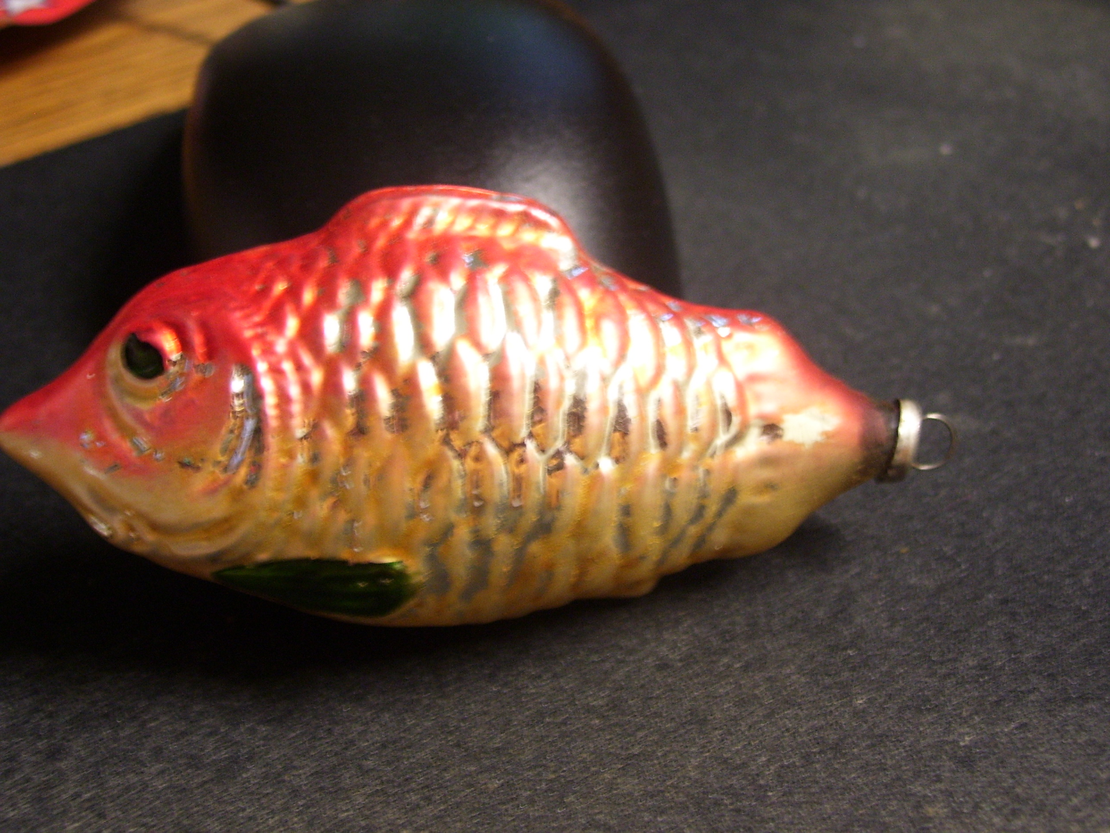 Title (ebay affiliate link): VTG VERY THIN GLASS FISH CHRISTMAS TREE ORNAMENT CLEAN!!