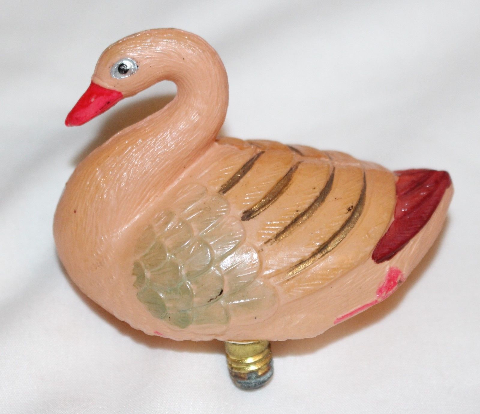 Early Celluloid Swan Christmas Tree Lamp. C-6. Not Working. Wonderful detail.